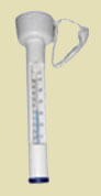 Floating thermometer with dual degree range scales (°F & °C) providing a continuous accurate measurement of the pool's or spa's temperature. the thermometer scales are sealed in a tube made of ABS with a transparent protection-sight and tied at the top there is a 100cm-long polyethylene cord. |